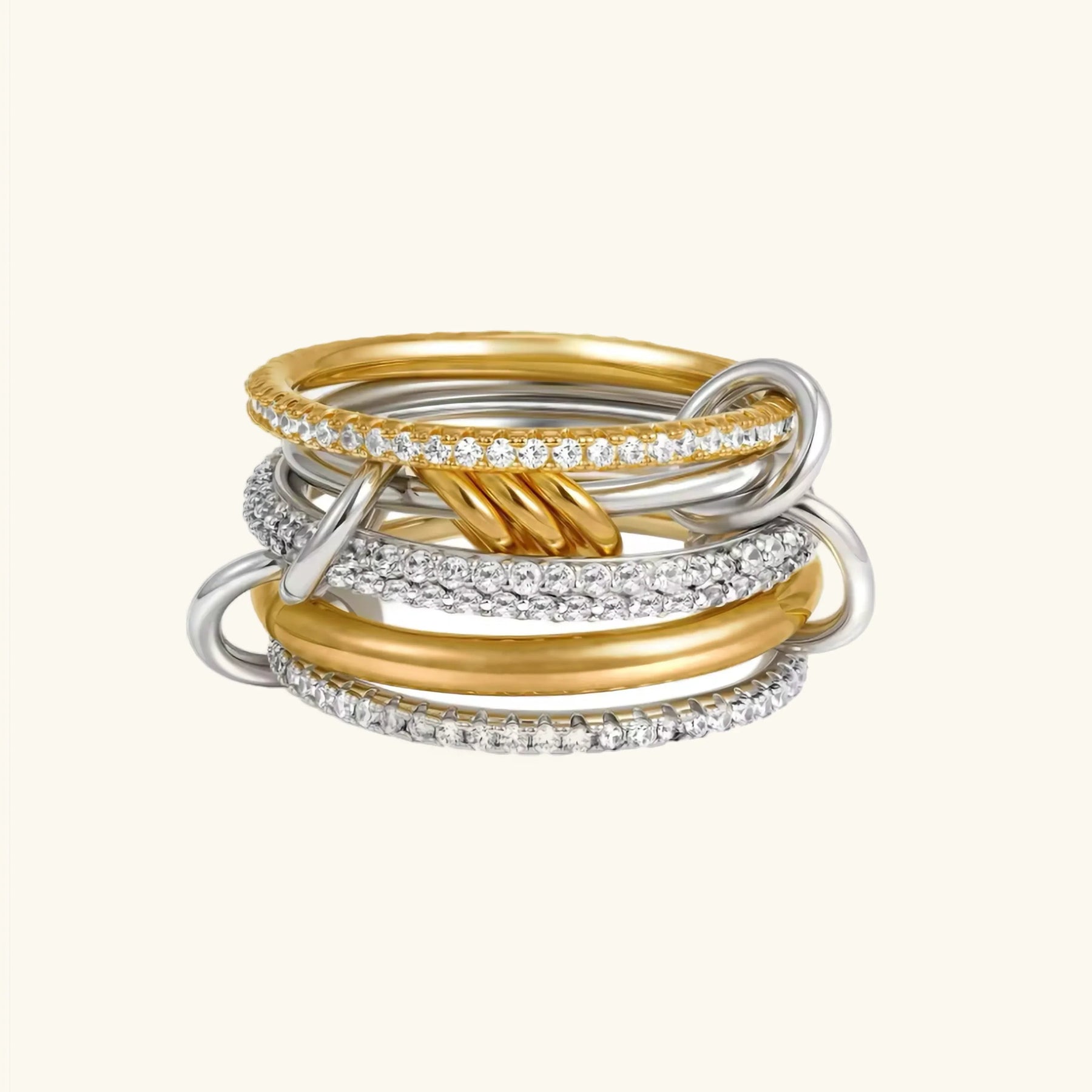 هل تبحث عن خاتم سهل الاستخدام "مرة واحدة وانتهى الأمر"؟ تعرف على كولين من AVARIA. يمنحك هذا القطعة مظهر مجموعة كاملة مع مزيج من درجات الذهب والفضة واثنين من الأشرطة الماسية التي تلتقط الضوء. إنها الطريقة المثالية لإضافة بعض الأناقة الجادة إلى يدك دون أي تعقيد. وفقًا لمعايير AVARIA، فهو مقاوم للماء 100% ومضاد للحساسية لارتداء خالي من القلق.