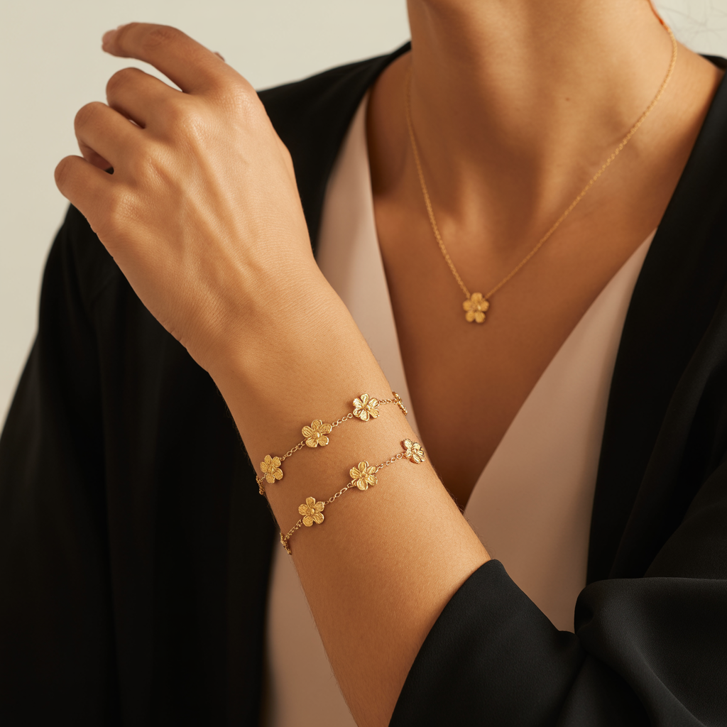 يتم تصنيع كل قطعة بعناية فائقة يدوياً – باستخدام مواد مجوهرات عالية الجودة وباهتمام بأدق التفاصيل لضمان الجمال والمتانة.