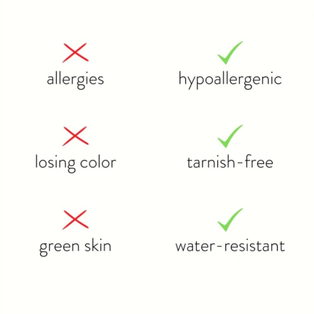 مصنوعة من الفولاذ المقاوم للصدأ المقاوم للماء، لن تضطر للقلق بشأن بهتان أو تلف المجوهرات مرة أخرى.