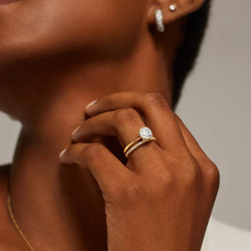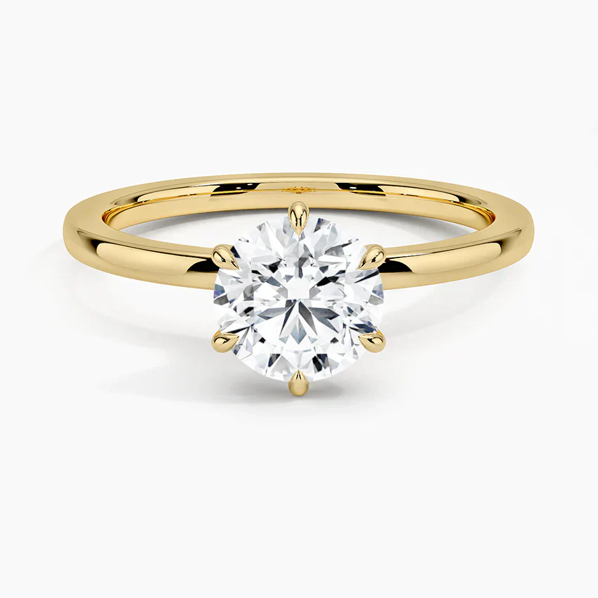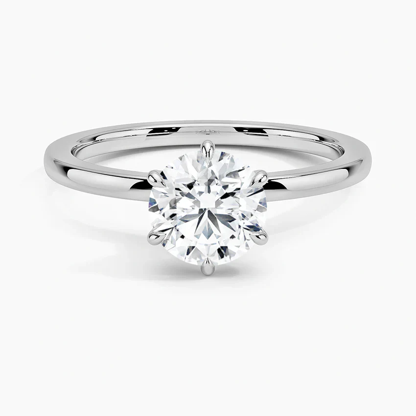 تعزز الإعدادة ذات الستة مخالب الأمان واللمعان، بينما يوفر الشريط المستقيم تصميمًا نظيفًا وخالدًا. خيار أنيق للخطوبة أو كرمز شخصي للأناقة، يجسد الرقي والحب الدائم.