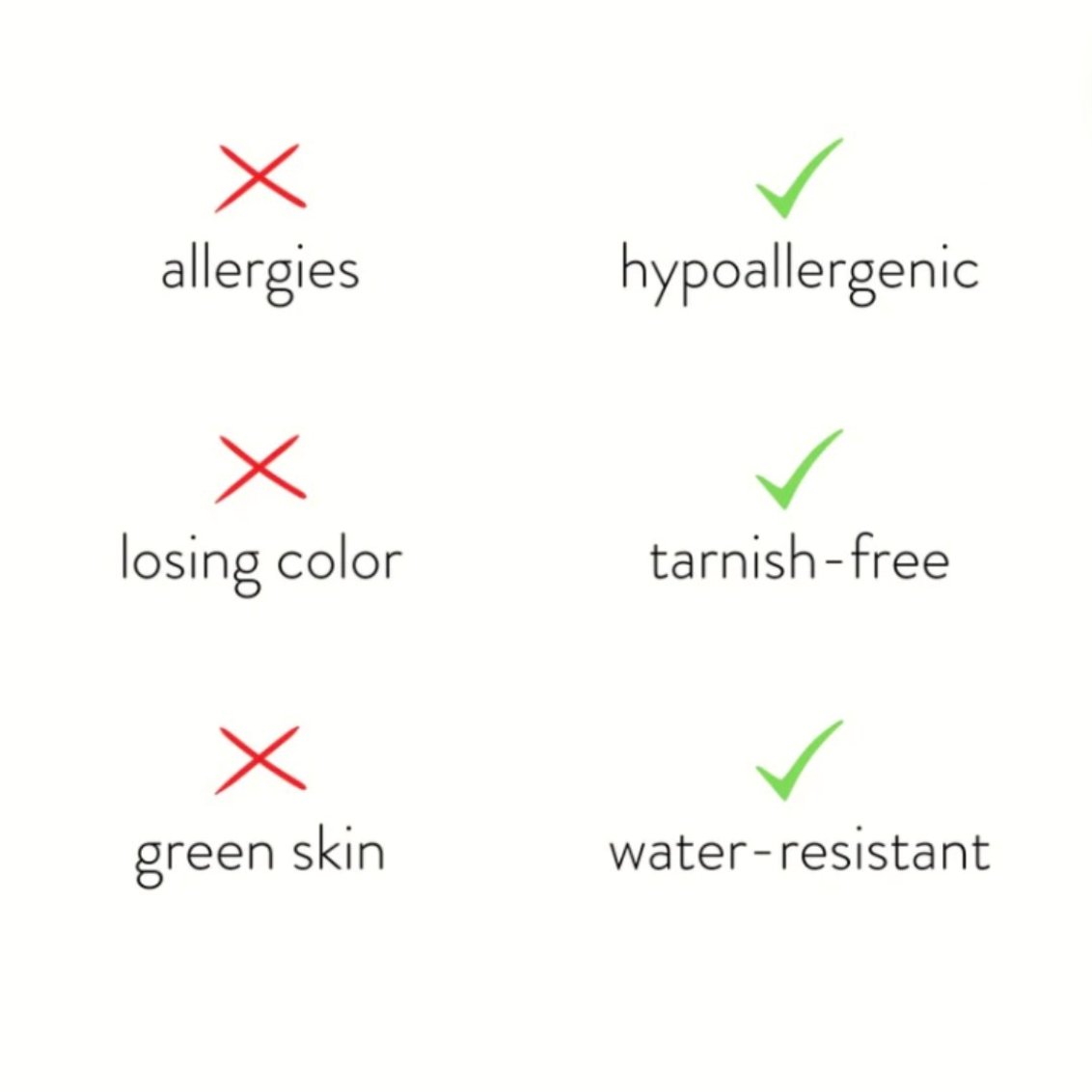 Made of waterproof stainless steel, you will never have to worry about your jewelry tarnishing or rusting again.